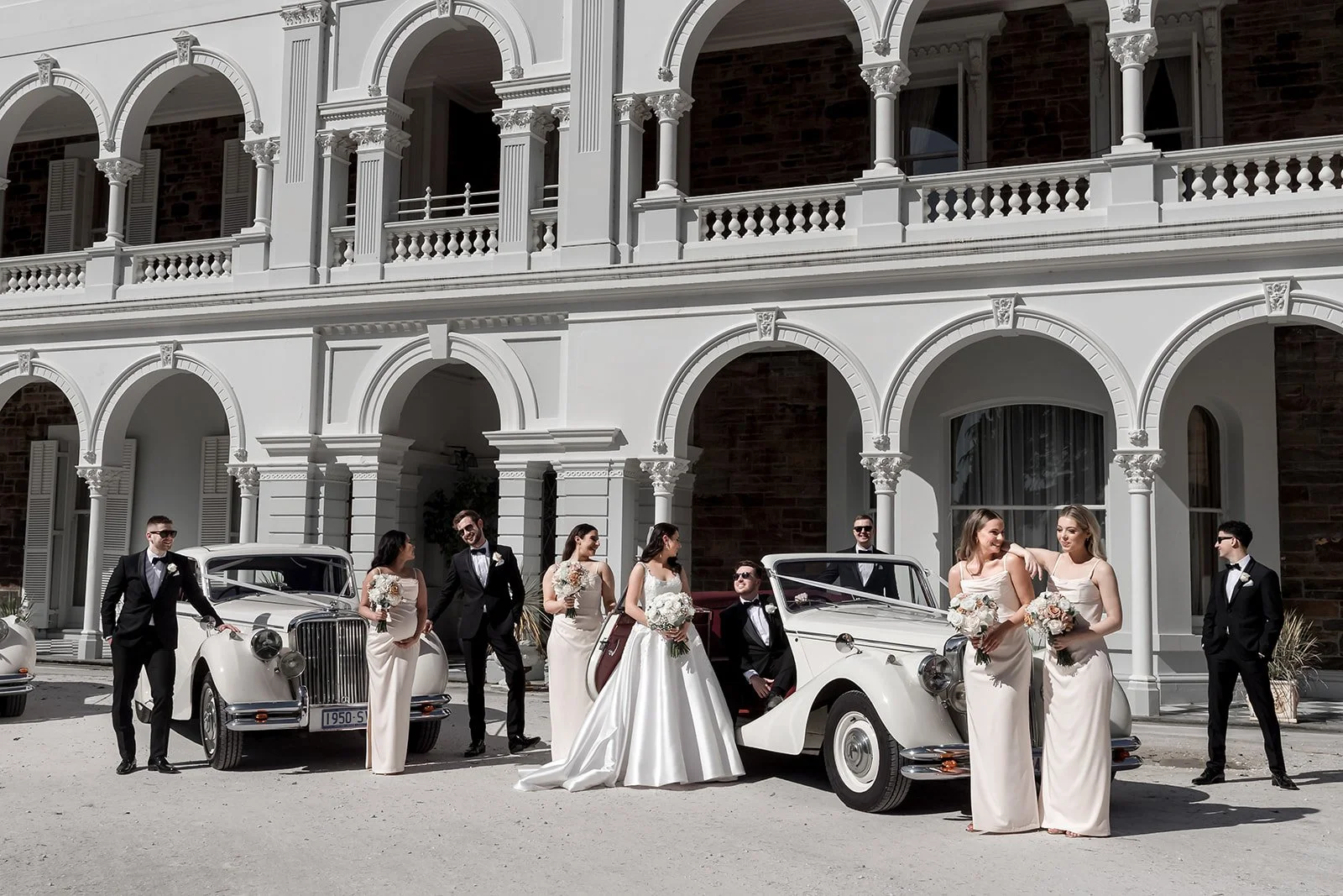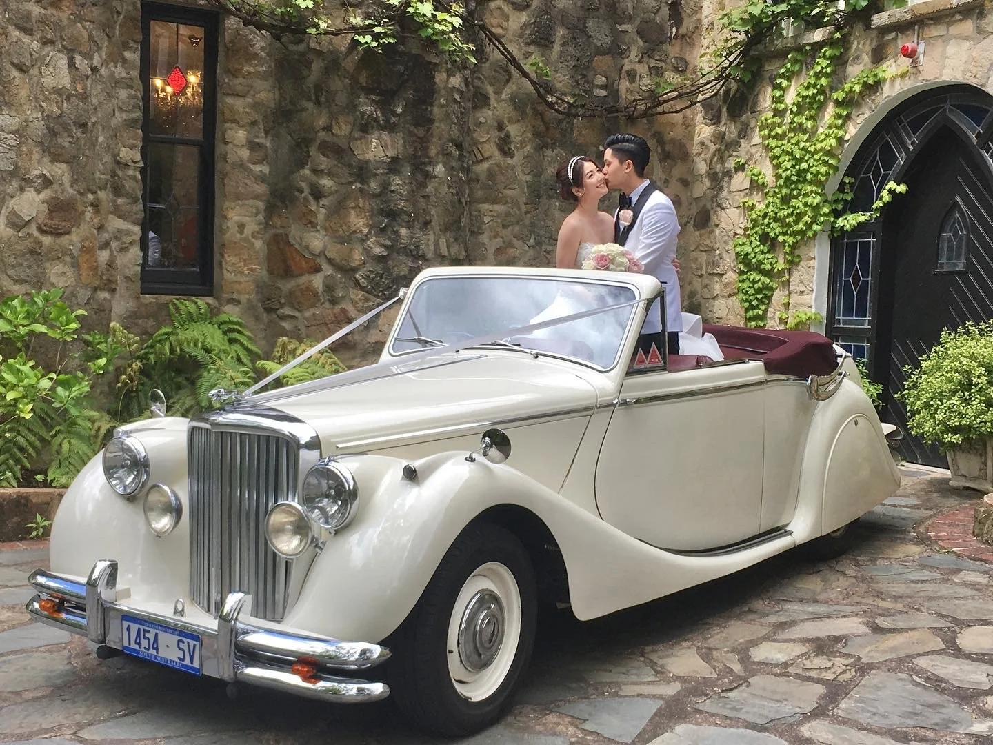 Our collection of seven perfectly matched 1949 classic Jaguar Mark V saloons is the only one of its kind in Adelaide. Painted in classic Olde English White & Pure White and fully restored to original condition, these cars exude timeless elegance and are ideal for transporting your bridal party in coordinated style.